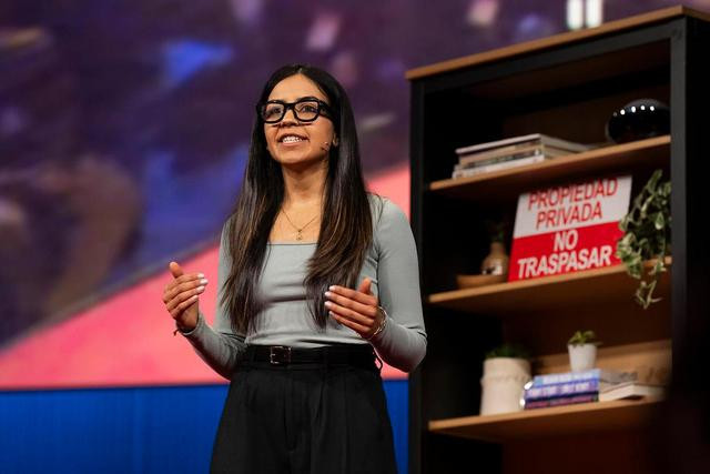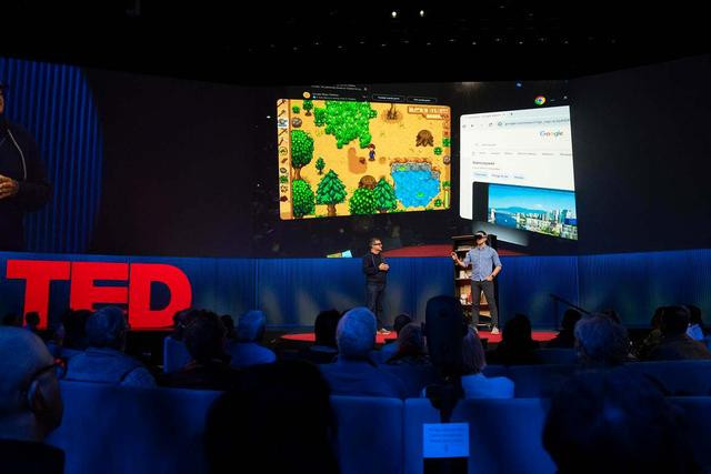 Izadi 邀请同事 Nishtha 登台,展示了这款虚拟现实眼镜。首先,她让谷歌的 AI 助理 Gemini 为 TED 观众创作了一首俳句。